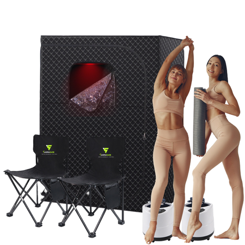 Tienda moderna de sauna infrarroja para 2 personas para exteriores con terapia de luz roja de espectro completo relajación y desintoxicación de vapor húmedo