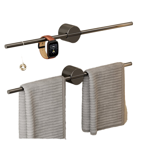 Toallero de baño individual de aluminio gris de pistola de lujo ligero Calentador de ahorro de espacio Diseño minimalista sin perforaciones para uso doméstico